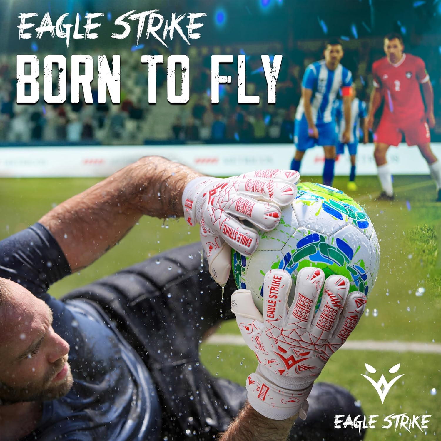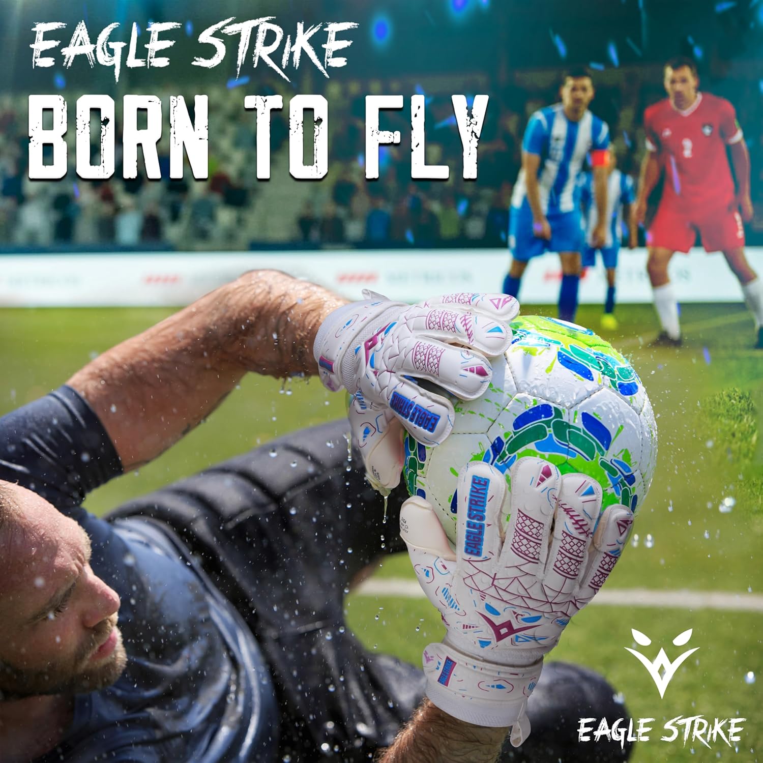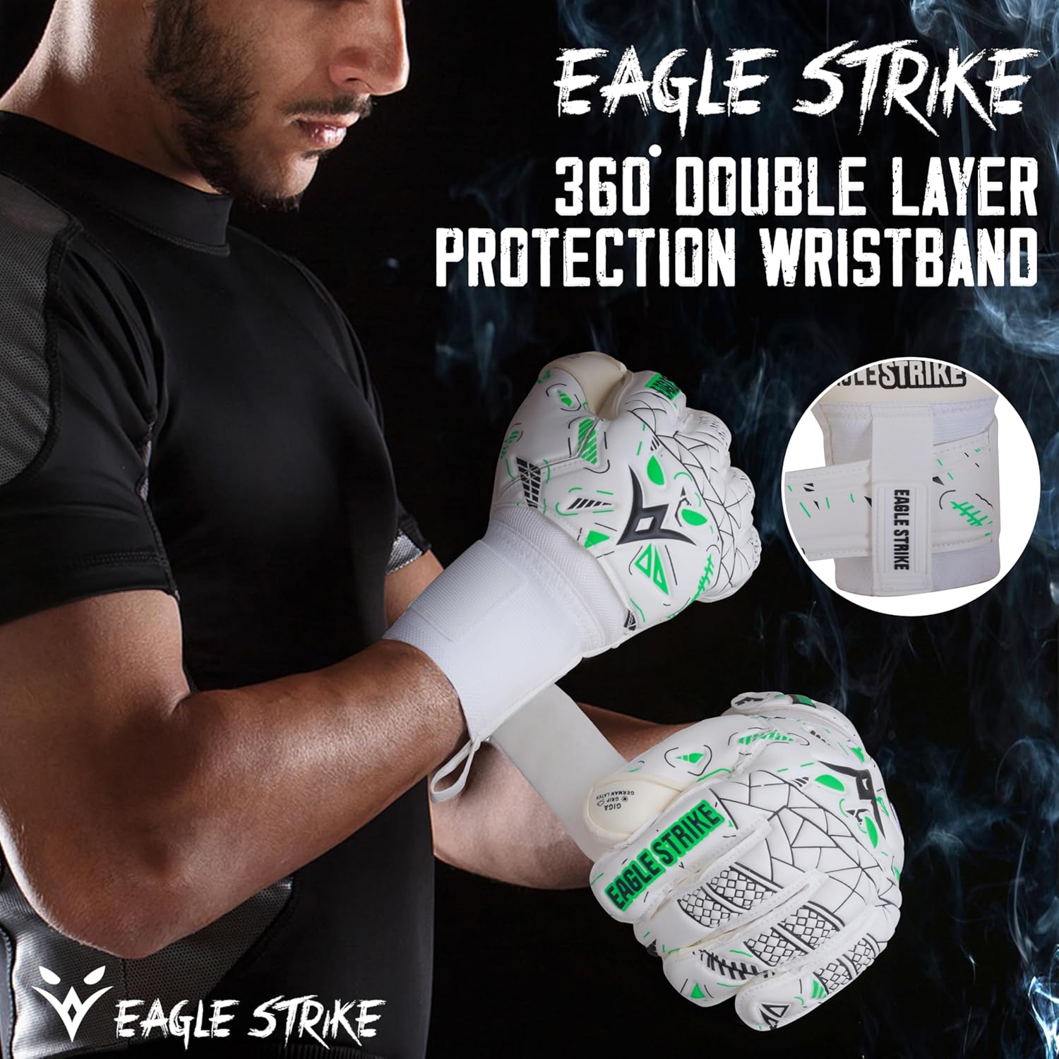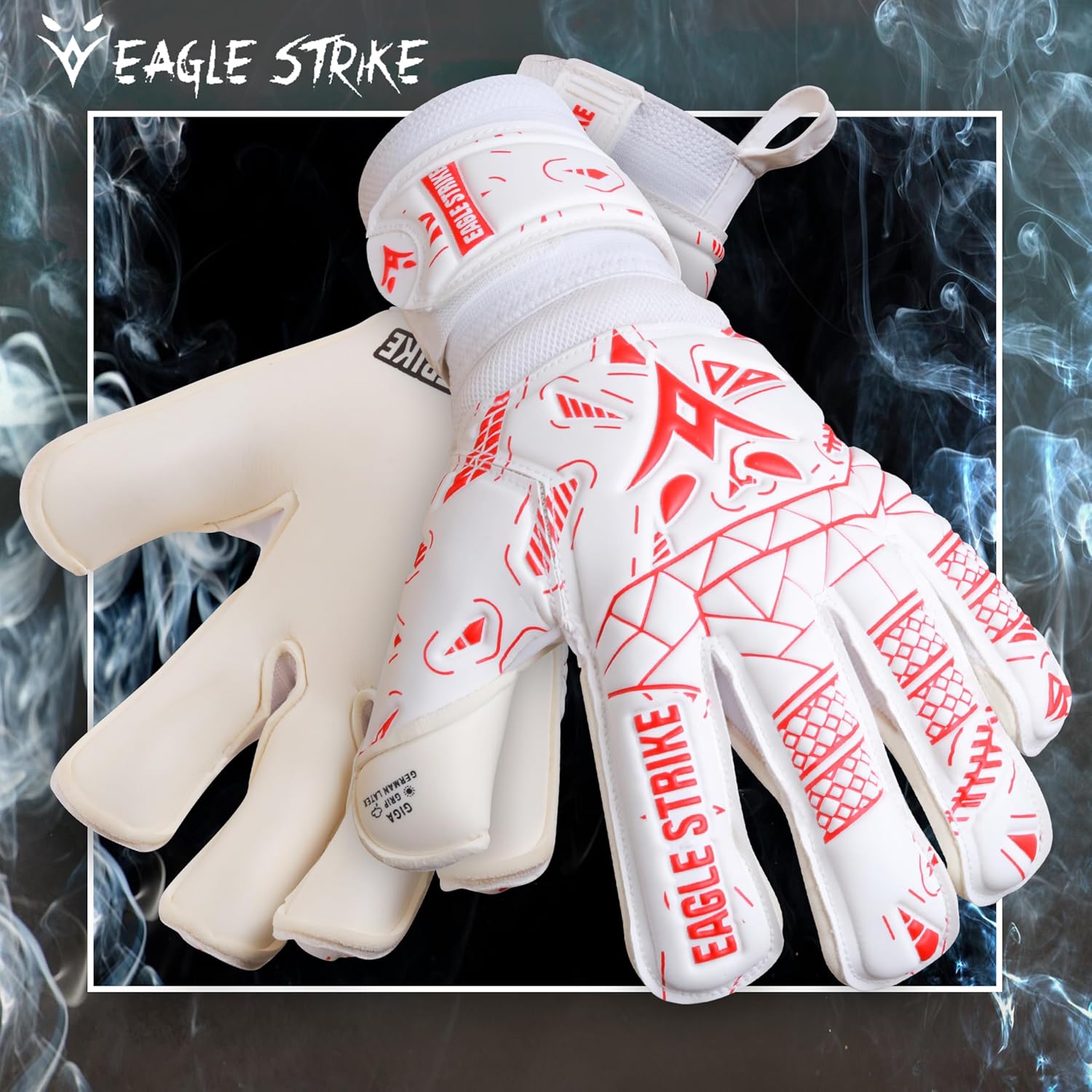Eagle Strike's 2024 Soccer Goalkeeper Gloves are engineered for superior performance. Made with premium German latex, they provide exceptional grip and durability. Available in six vibrant colors, these gloves cater to both kids and adults, offering sizes 5 to 11. Special features include removable finger protection, an adjustable strap for a custom fit, and an all-weather Giga Grip palm for optimal control in any condition. Designed for flexibility, lightweight comfort, and moisture management, these gloves are perfect for goalkeepers at all levels.